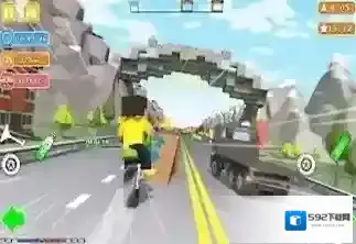 1、积木美学的视觉体验:低多边形方块建模搭配明亮色彩,摩托车、障碍物与场景均以积木元素呈现,动态光影增强立体感,营造清新治愈的视觉氛围,适配碎片化休闲场景。