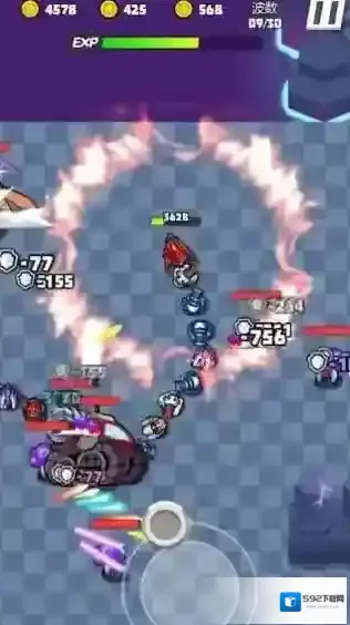 3、能看到角色正在攻击敌人,界面上方显示金币数量(60)、波次进度(1/10)、经验标识(EXP)。
