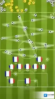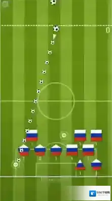 2、在弹球世界杯游戏中,需要操控足球弹射,碰撞带俄罗斯国旗的图形,利用弹射机制消除目标积累分数。