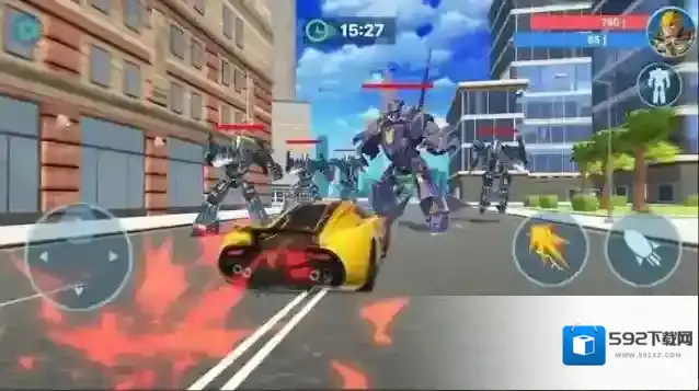 1、启动游戏后化身全能战斗机器人,可在汽车、战机、机甲等形态间自由切换,肩负保卫都市的重任。