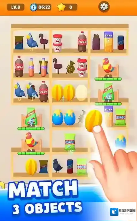 2、视听体验经过精心打磨,界面采用明快活泼的配色方案,不同类别物品都有独特音效反馈,搭配舒缓轻快的背景音乐,营造出舒适又充满活力的游戏氛围。