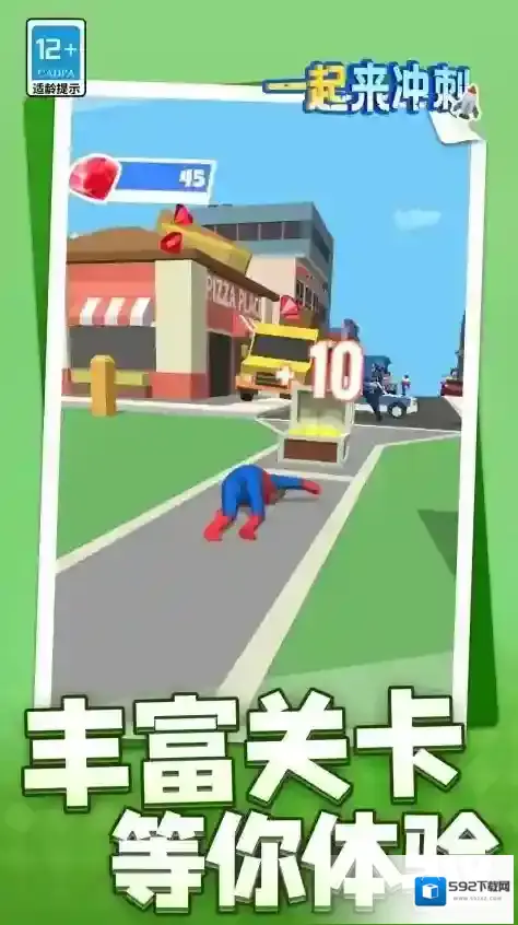 3、随着关卡推进逐步解锁新人物和车辆,根据属性特点进行搭配。不断提升操作技巧,挑战更高难度地图,体验冲刺带来的乐趣。