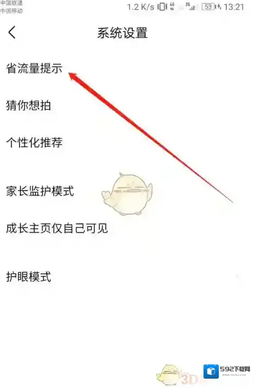 5、点击“省流量提醒”一栏。