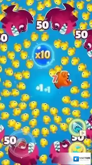 2、多元模式自由切换:多样化玩法模式支持自由切换,包括限时挑战(规定时间内成长到目标体型)、BOSS战(对抗巨型鲨鱼等强大敌人)。