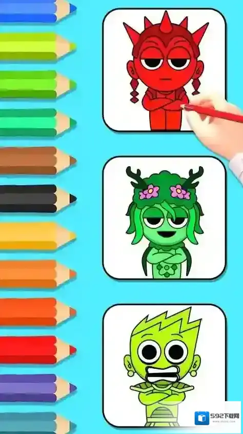 3、通过底部调色笔选取对应的颜色,在图案区域内完成填色,体验涂鸦的乐趣。