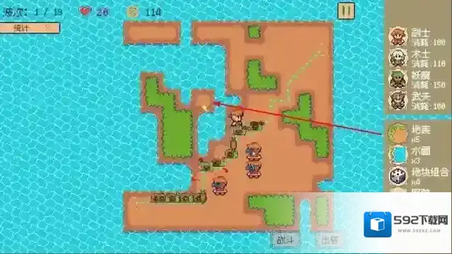 3、“波次防御”,应对1-19等多波敌人进攻,根据战况调整兵种,坚守岛屿,完成关卡。