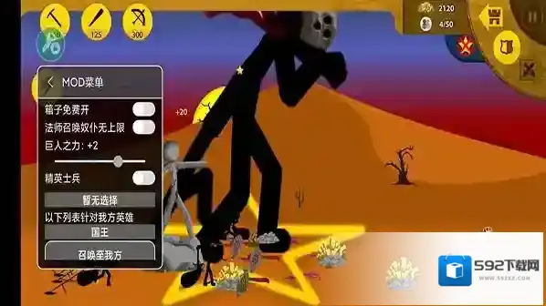 1、操控军团征战沙场:在战役模式中带领火柴人军团攻占敌方据点,通过升级科技与训练士兵提升战力,解锁更高级兵种与技能。