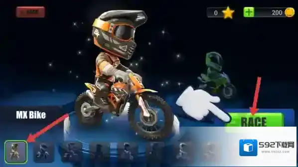 3、自定义装扮系统:可更换骑手的头盔、服饰与摩托车贴纸,打造个性化外观,还能为车辆喷涂渐变色彩与反光特效。
