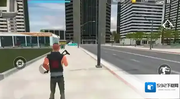 2、后续任务“Go to the marked point0/2”,前往街道上绿色汽车旁的蓝色光圈,靠近车辆,推进任务进度,留意城市建筑环境。