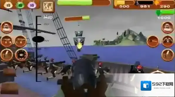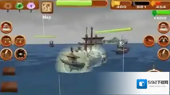 2、指挥战舰作战:操控战舰参与海战,利用望远镜侦察、预判攻击、躲避炮火,在舰队对决中发挥指挥才能,击败敌对海盗势力。