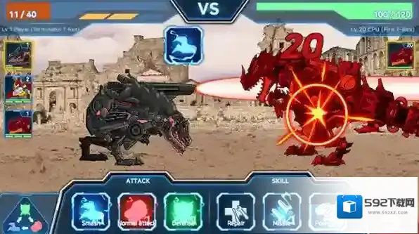 2、战斗系统:通过观察、预判与操作完成战斗,合理利用机甲技能与武器效果,连续成功操作触发机甲觉醒,获得额外资源与奖励,灵活应对不同类型的战斗挑战。