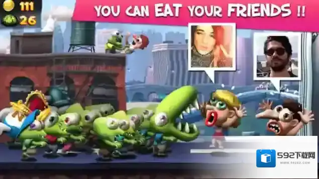 僵尸尖叫(Zombie Tsunami),一款以僵尸为主题的趣味横版跑酷手游。在游戏中,我们扮演的僵尸将会在道路上狂奔,通过吃掉人类来增加自己的队伍,但是也要小心一路上的障碍物和陷阱,每次碰到都会损失队员哦!不仅如此,我们还可以拾取路途中的白色问号箱,它会带给你随机的强化能力,例如巨大化、合体或者变身等等,能够让你横冲直撞,不惧任何障碍!接下来就看看你能够跑多远吧!