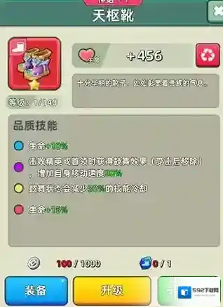 装备品质从白色到红色,品质越高,技能越多,割草速度越快。