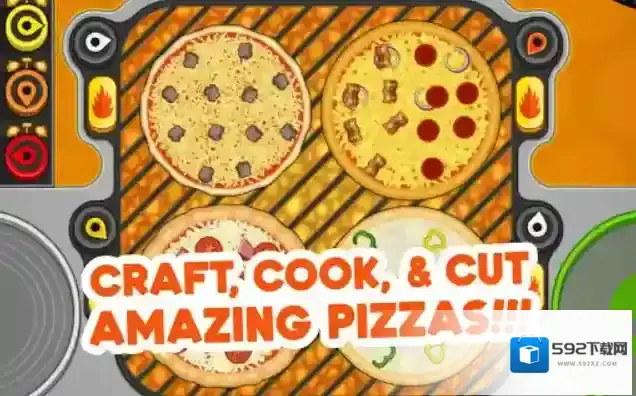 2、在不断的经营中提升自己的等级,解锁更多的食材,制作出更多丰富口味的披萨,挑战更有意思的烹饪。