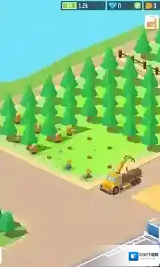 3、雇佣完工人后需要解锁运输方式,点击右上角的按钮可以解锁卡车运输木材。