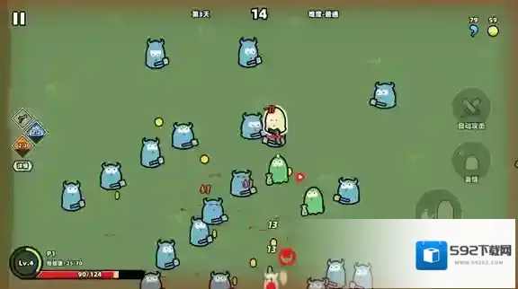 5、全部选好后就会正式开始,滑动屏幕可以控制角色移动,点击右边攻击按键可以自动攻击。