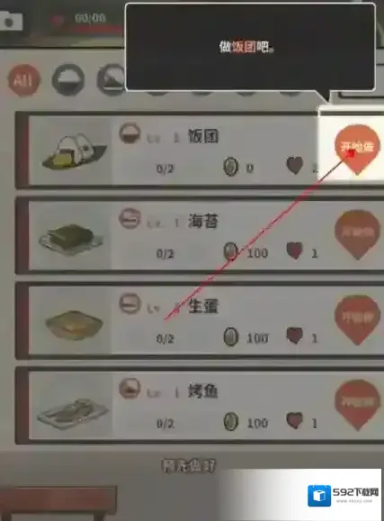 4、有顾客来店里的时候,玩家就需要准备食物,点击料理,开始烹饪制作。