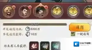 通商商人需要解锁地图才能开战,玩家要留意自己的关卡,乔掌柜的资质技能比较高,是20倍客栈加成,可以早起增加客栈的赚钱速度。