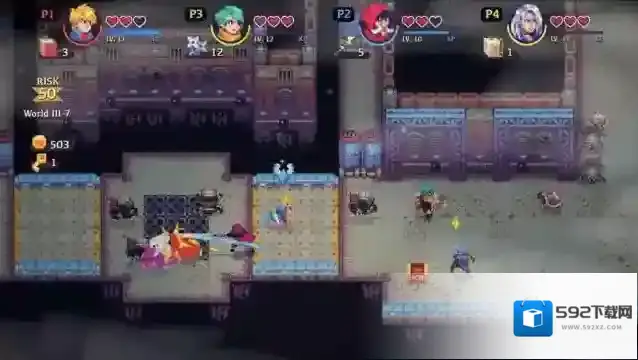 2、四位不同的英雄角色可以选择来操控,你可以和好友并肩作战,也可以自己操控四位英雄战斗。