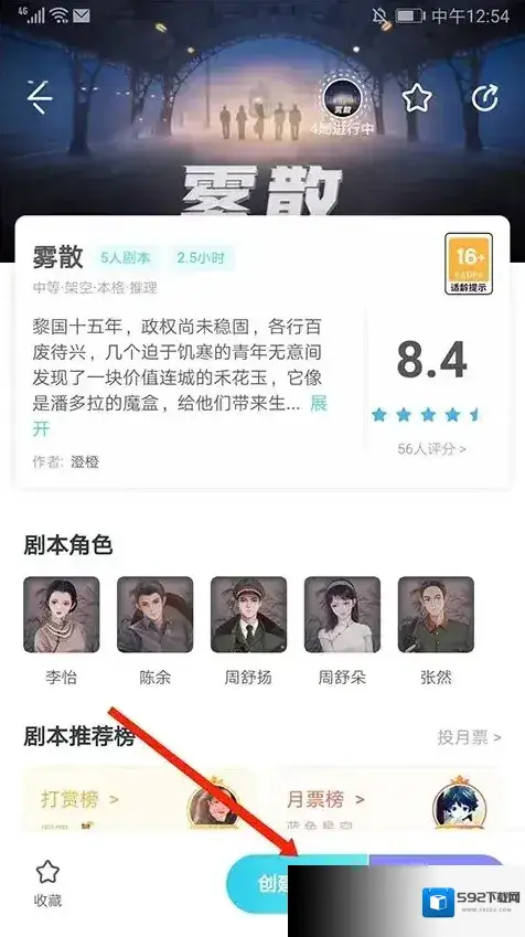 1、打开我是谜游戏,挑选好所需的剧本后,点击屏幕下方的创建房间选项。