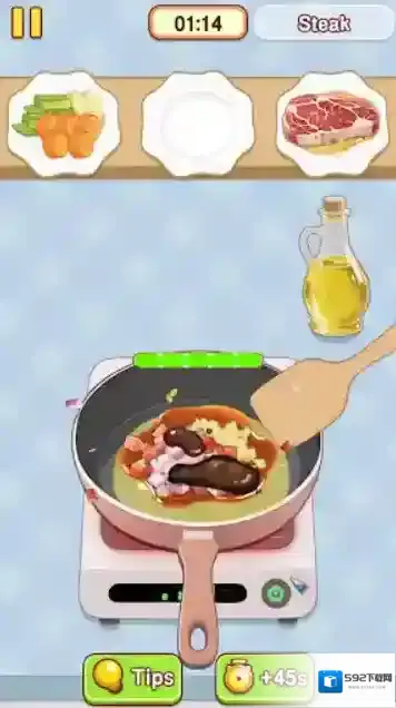 2、丰富多样的关卡等着你来挑战,每一关都是一道特色美食,学握烹饪时机,烹制金黄酥脆的美食。