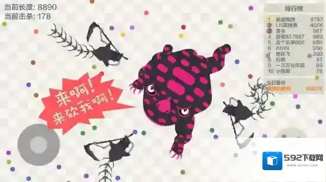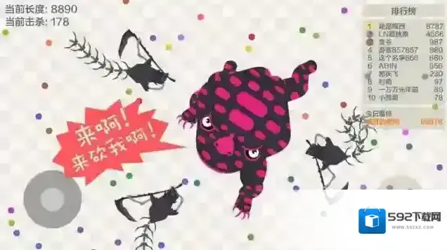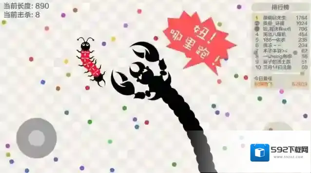 3、吃掉场景中的小球可以让你的身体变长,身体越长获得的分数越多。