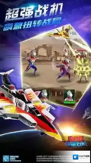 3、您将亲手操控迪迦、银河等备受喜爱的人气英雄,释放宇宙光线,收集强大的宇宙战机,守护人类家园。