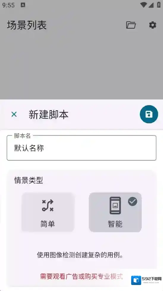 4、选择好情景类型后,为脚本设置一个名称,然后点击右上角的“保存”按钮。