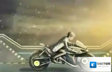 3、切换至竞速玩法,操控骑摩托的角色,沿箭头方向加速行驶,利用科幻赛道环境,完成摩托挑战关卡,解锁新内容。