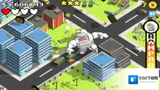 2、在破坏过程中,会有警车、坦克、直升机等各种武器来阻止你,在保证生存的情况下去尽情的破坏城市吧。