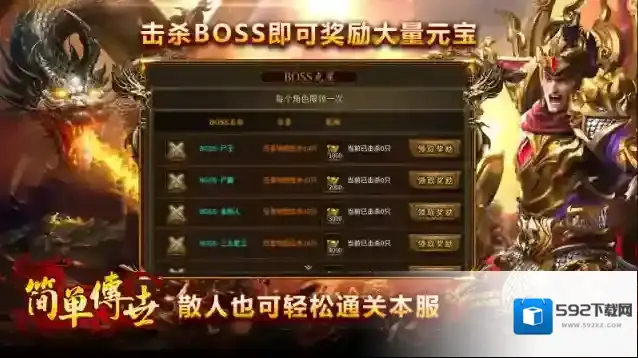 简单传世,180微变特色三职业传世版本,三端互通,内容长期好玩,前期怀旧玩法,中后期体验山海经系列剧情内容!本服三职业相当平衡,战士装备加攻速,法道技能加快施法速度,玩起来各有千秋,没有最强的职业,只有最适合你的职业!游戏内无论是装备、材料还是货币,全部都非常好打,还有打不完的BOSS,只要花时间,人人都能混到终极套,散人一样逆袭!