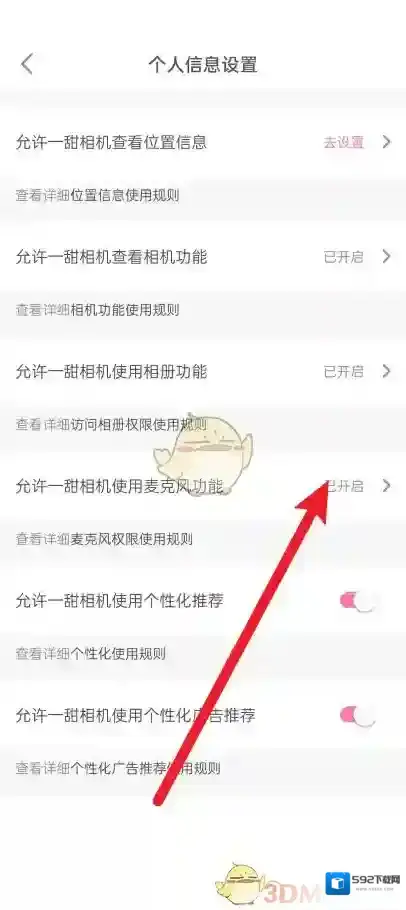 5、找到允许一甜相机使用麦克风功能,关闭该功能即可。