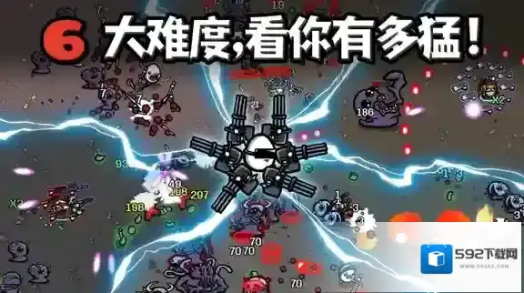 5、幸运星:加幸运为主,幸运星被动,拾取材料时有概率造成幸运伤害,靠赛博球象宝宝打伤害,是幸运伤害,必须拿而且要尽量去找。多拿外星绅士,加敌人数量,敌人越多越好刷钱。前期主加幸运和收获,会增加获得钱,配合外星绅士前期会打到钱,对幸运星很重要,幸运高商店会非常胡,需要足够钱购买,加点:生命,伤害。初始装备可以选弹弓树枝螺丝刀,幸运星武器不重要,主要靠赛博球和象宝宝打伤害。初始选树枝,树枝便宜并且前中期较强,做过渡,也可以选弹弓用到结束,也可用螺丝刀,螺丝刀是范围伤害,回血手段,找树木,有树木增加道具加血词条物品。