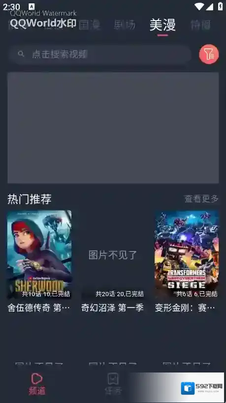 2、频道页面包含了很多的动漫资源,日漫、国漫以及韩漫等都有。