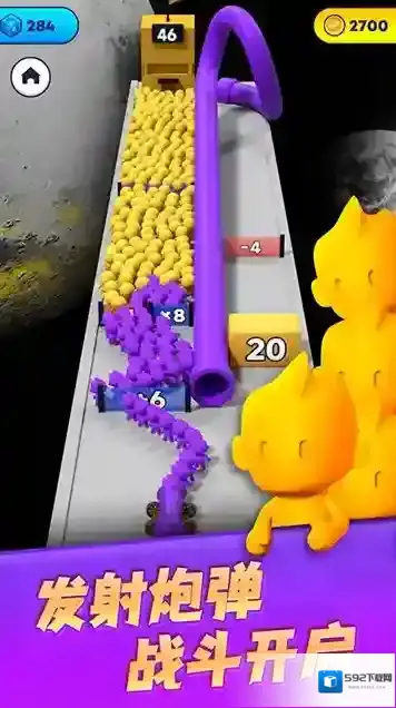 1、扮演倍增战斗大师,操控大炮发射出颜色对应的士兵群体,并引导其穿越变换的路径。