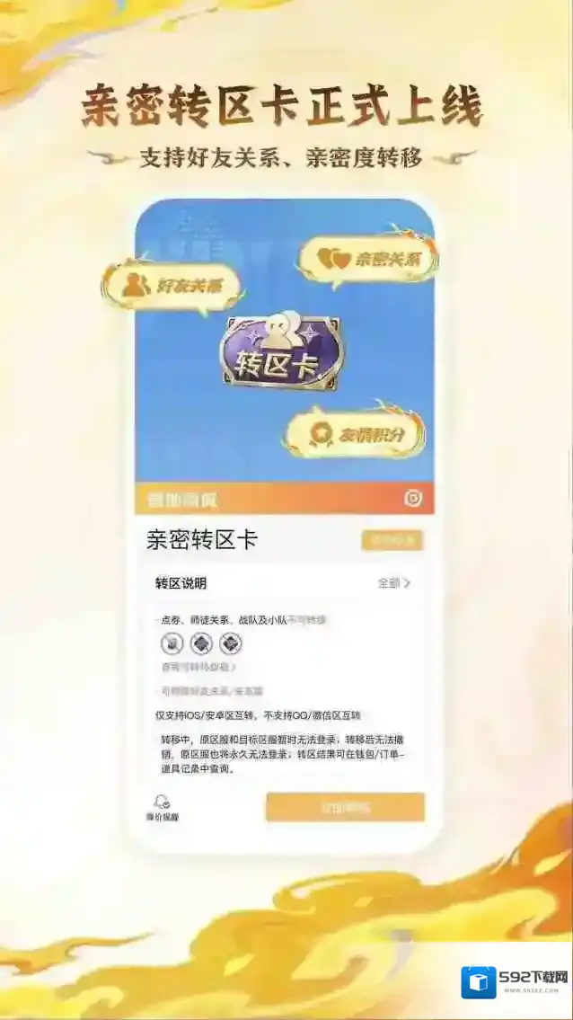 2、亲密转区卡正式上线,支持好友关系、亲密度转移!