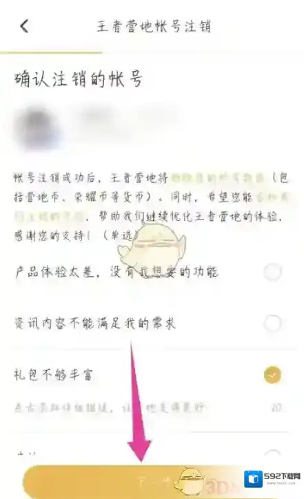 3、然后就能看到“王者营地账号注销”选项了,点击去注销。
