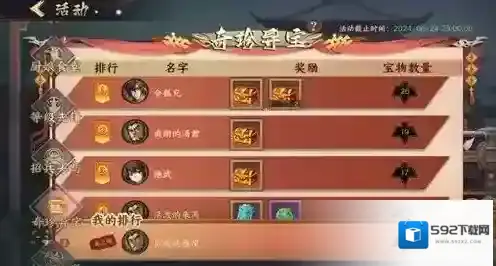 6月11日0点,将根据宝物数量结算排行奖励,玩家可赢取橙将自选箱、补天石等排行奖励。