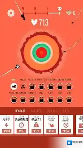 3、每一次几种星球都会获得金币,可以用来升级自己的各项属性。