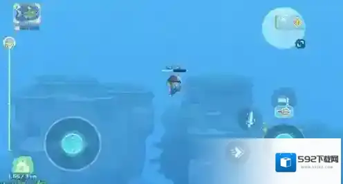 使用左侧摇杆控制角色移动,右侧按钮发射鱼叉捕鱼,注意角色氧气条,在耗尽前需返回水面。
