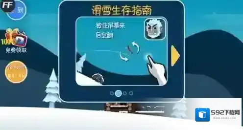 玩家首先需要接到这些道具,然后在合理做出一些聚气的难度动作,这样这些东西如果被利用合适的话,能帮助人物加快滑行的速度,同时游戏屏幕上方会有此时的奖励状态,玩家通过在滑行中收集金币奖励、完成高难度动作等,可以填满奖励状态,从而激活各种高级工具例如火箭船等,还可以和企鹅、雪怪人一同搭载着火箭船一起滑行,这样不久可以保障我们的安全还可以加快其逃亡的速度。