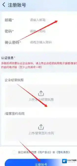 2、用户需要通过手机号加验证码的形式进行信息注册与身份验证,还需要上传企业经营执照与签约合同进行认证,通过后即可快速进入软件享受优质功能。