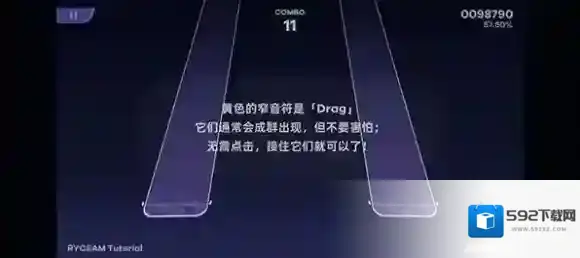 2、点击(click)音符操作最为基础,仅需轻触轨道右下角即可触发。