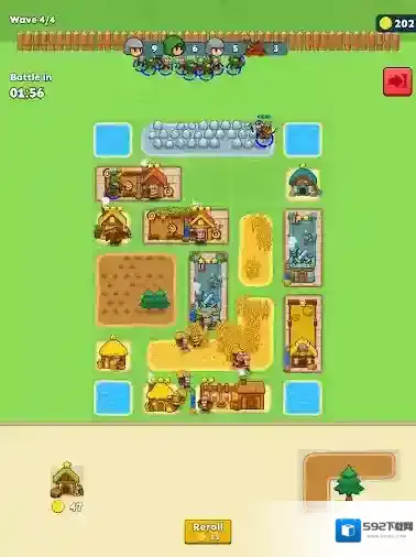 种田与征战(Farm Fight),一款玩法十分独特有趣的背包塔防类手游。游戏中与一般的背包塔防不同,在格子中放置的不是各种武器道具,而且各种农田和农场,通过采集各种资源,例如稻子、树木等,以此来生产出战士、弓箭手等不同类型的士兵,和凶恶的敌人展开激烈的战斗,消灭所有敌人之后就能够过关获得奖励了!通过不断推进关卡,我们还可以解锁更多不同类型的农场,生产更多类型的士兵,挑战更多强大的敌人!