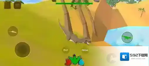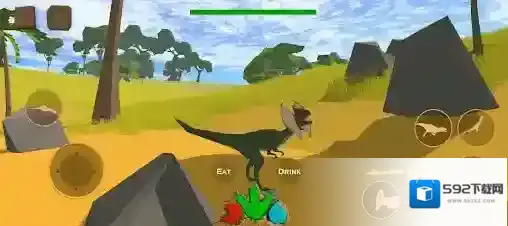 5、攻击其他恐龙可以将其吞食,吃掉对方可以恢复你的生命值和能量,饥渴值可以通过喝水来恢复。