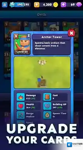 3、通过升级来强化你的单位。赢得战斗时解锁宝箱,其中包含有价值的卡牌,可增强您的部队并提高您的战术优势。