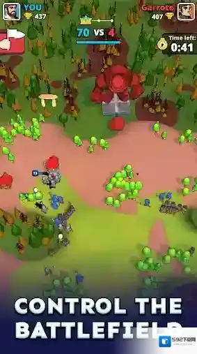 小小冲突(Tiny Clash!),由知名厂商Voodoo所推出的一款休闲塔防类手游。玩家将会踏入一个充满了战斗的惊险世界当中,与来自世界各地的玩家们展开激烈无比的1v1对战,在自己的领地上建造和部署各种独特的建筑,派遣各种强大的单位去进攻对手的领地,消灭所有敌人并占领对手的区域,取得最终的胜利!不断的去收集更多的资源,解锁更多的建筑和士兵,战胜更多强大的对手!