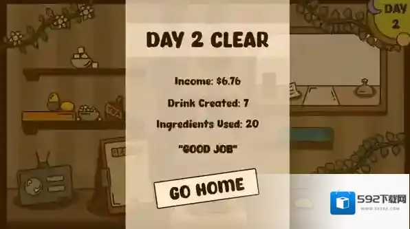 4、当完成所有的订单后就会结束一天,此时玩家可以消耗金币来解锁更多的配料去制作饮品。