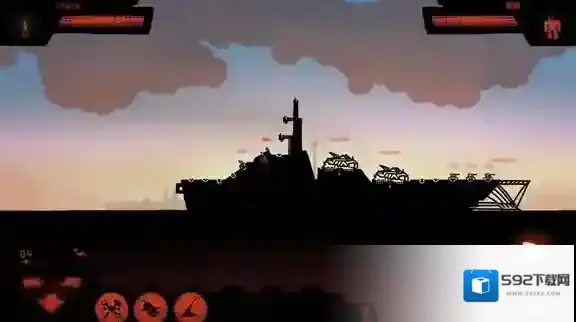 5、滑动屏幕可以移动视角,能观察对方舰船的动向。屏幕上方左侧的时玩家的血量,右侧的是敌人血量,当敌人血量为零时就可以通关。