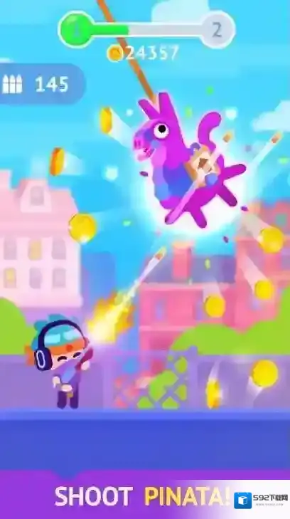 击碎超大号的皮纳塔,满屏的金币掉落,解锁超威力的战斗武器,提升战斗属性。